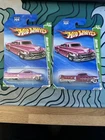 LOT OF 2 BOTH PINK VARIATIONS, R7434 and R7446 The product is a Hot Wheels Super Treasure Hunt Custom Cadillac Pickup in pink color from 2010. This diecast car is part of the Hot Wheels series and features special edition and chase characteristics. It is in 1:64 scale and is a sought-after collectible item for fans of diecast toy vehicles.