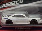 The Hot Wheels Premium 2024 "Modern Classics" Nissan Skyline GT-R BCNR33 GREDDY is a 1:64 scale diecast model of a white 1990 Nissan Skyline GT-R. It is part of the Hot Wheels Modern Classics series and features a GREDDY theme. This special and limited edition model comes in an unopened box, making it a sought-after collectible for fans of car culture.
