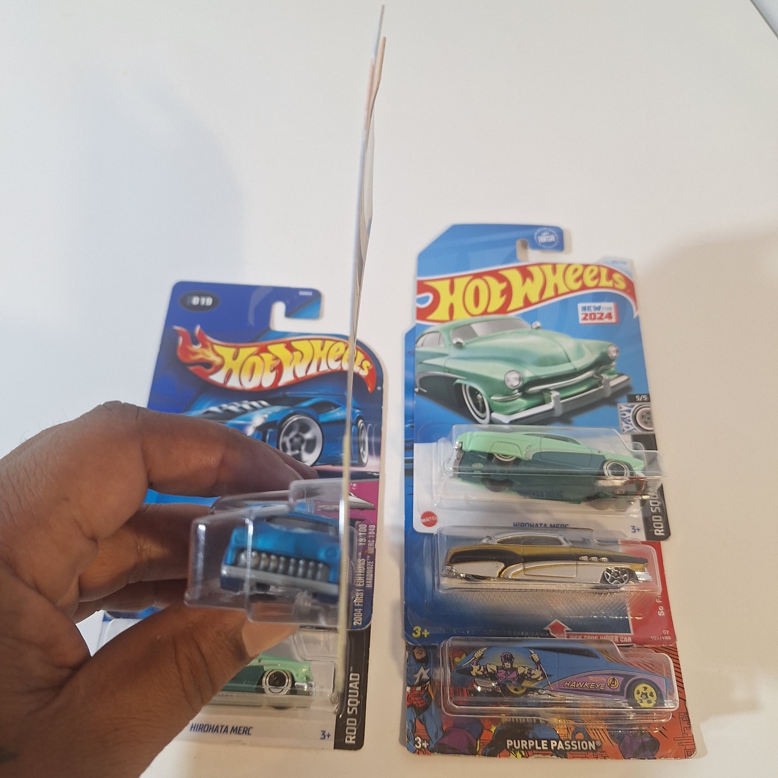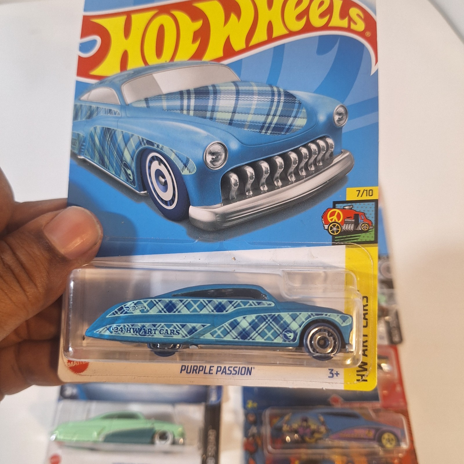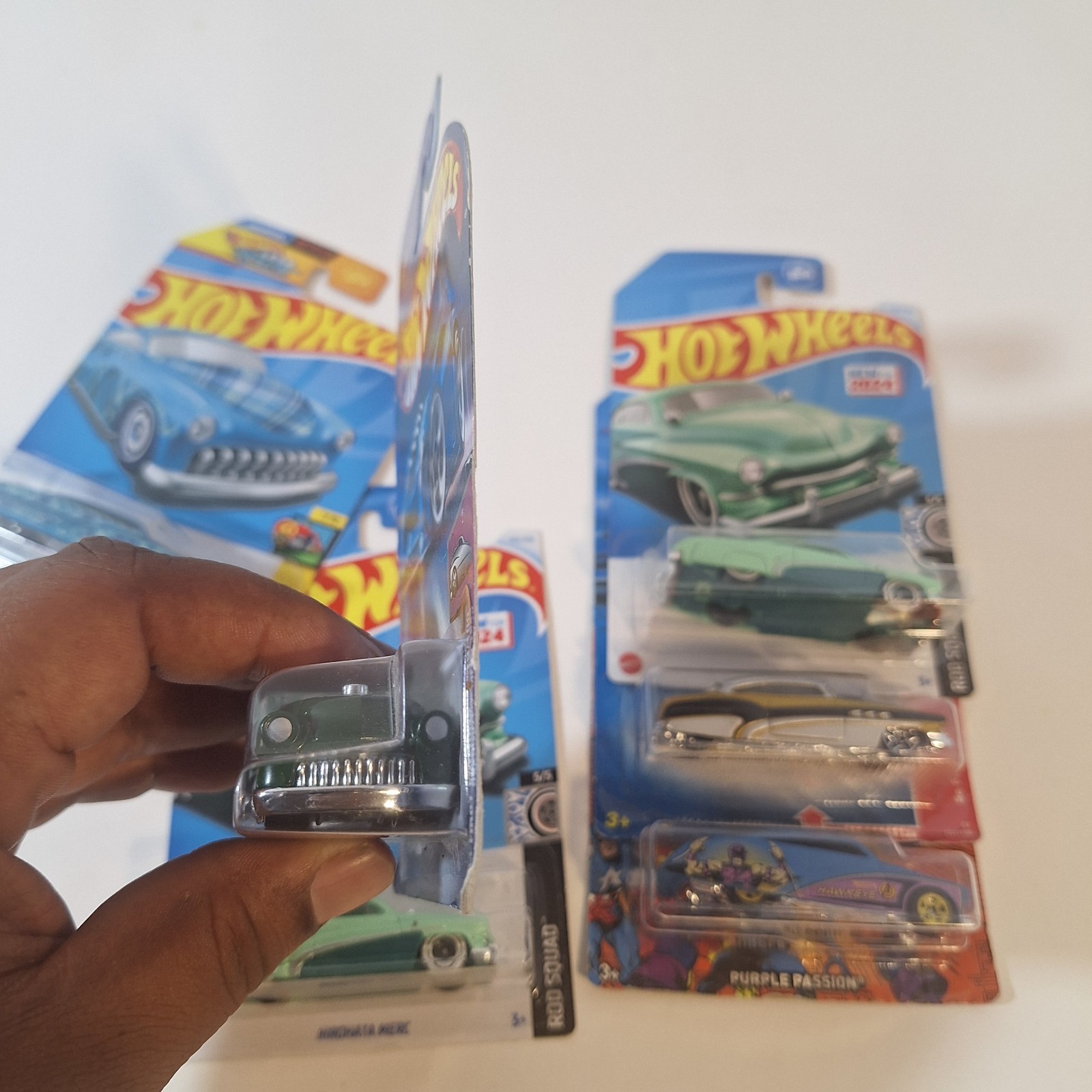 The Hot Wheels 5 Hirohata Merc Rod Squad Cards Are Not Perfect, featuring a purple 1949 Mercury diecast car from the Hot Wheels Rod Squad series. This 1:64 scale model is part of the contemporary manufacture line of toy vehicles, perfect for collectors and car enthusiasts alike. With its detailed design and unique character family, this Hot Wheels car is sure to be a standout addition to any collection.