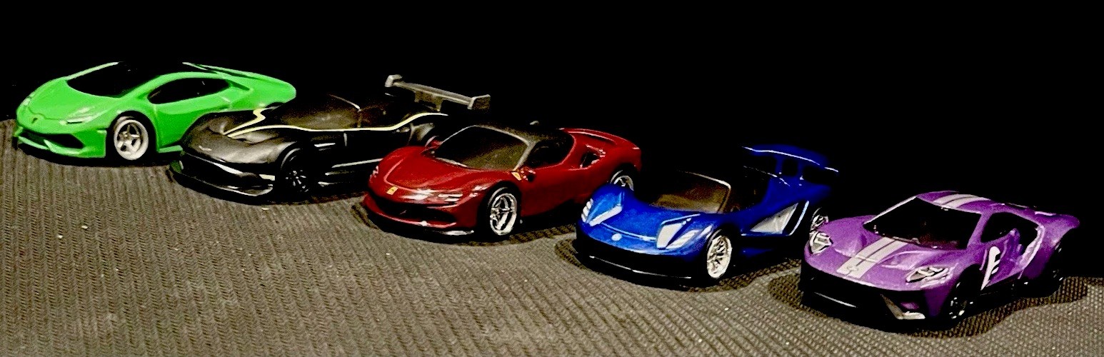The Hot Wheels 5-Car Pack 1:64 Scale Motor Show features custom wheels and tires for real riders. This pack includes five cars in 1:64 scale from the Hot Wheels Real Riders series, with each car featuring a colorful design and representing a car from the Motor Shows character family. Perfect for collectors and car enthusiasts, this set offers a variety of vehicles to add to your diecast and toy vehicles collection.