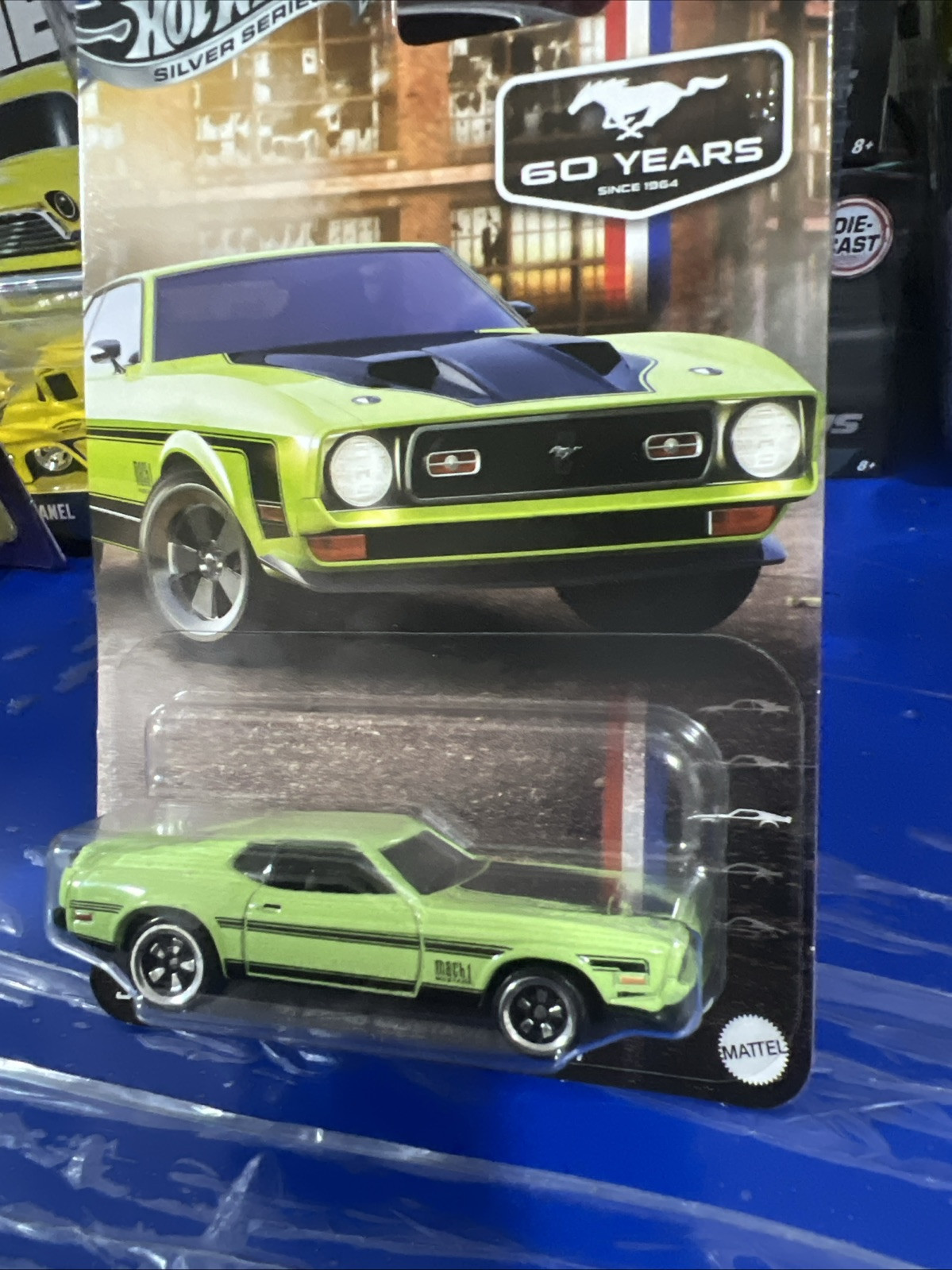 The Hot Wheels Walmart Exclusive 60 Years Silver Series '71 Ford Mustang Mach 1 is a special edition diecast car from the Hot Wheels Mustang Silver Series. This 1:50 scale model of the 1971 '71 Ford Mustang Mach 1 is in a striking green color and is part of a mixed series. With its unique design and exclusivity, this Hot Wheels car is a highly sought-after collectible for both car enthusiasts and diecast collectors.