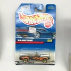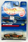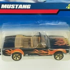 This Hot Wheels diecast model car is designed after the classic 1965 Ford Mustang Convertible. The car is in its original packaging and has never been opened. It features 5 spoke rims with a black body and gold accents. The interior is tan in color. The model is a 1:64 scale and is perfect for collectors or fans of the Mustang.