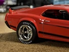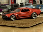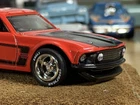 Hot Wheels 2025 '69 Ford Mustang Boss 302 Jacked up on the Back 70’s Style with Custom Wheels Swap with 12mm Mags on the Rear and 10 mm on the Front Placed Back on Card. Combined Shipping on Hot Wheels/ Matchbox.