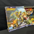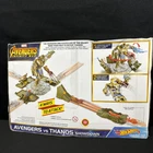 Get ready for an epic showdown with the Hot Wheels Avengers Vs Thanos Playset from the Marvel Universe. This multi-color playset features vehicles from the Wave 2 collection, including the Infinity War Marvel series. The set includes a buildable Thanos figure and comes in an unopened box, perfect for collectors and fans alike. New, unopened, however box does have damaged as pictured