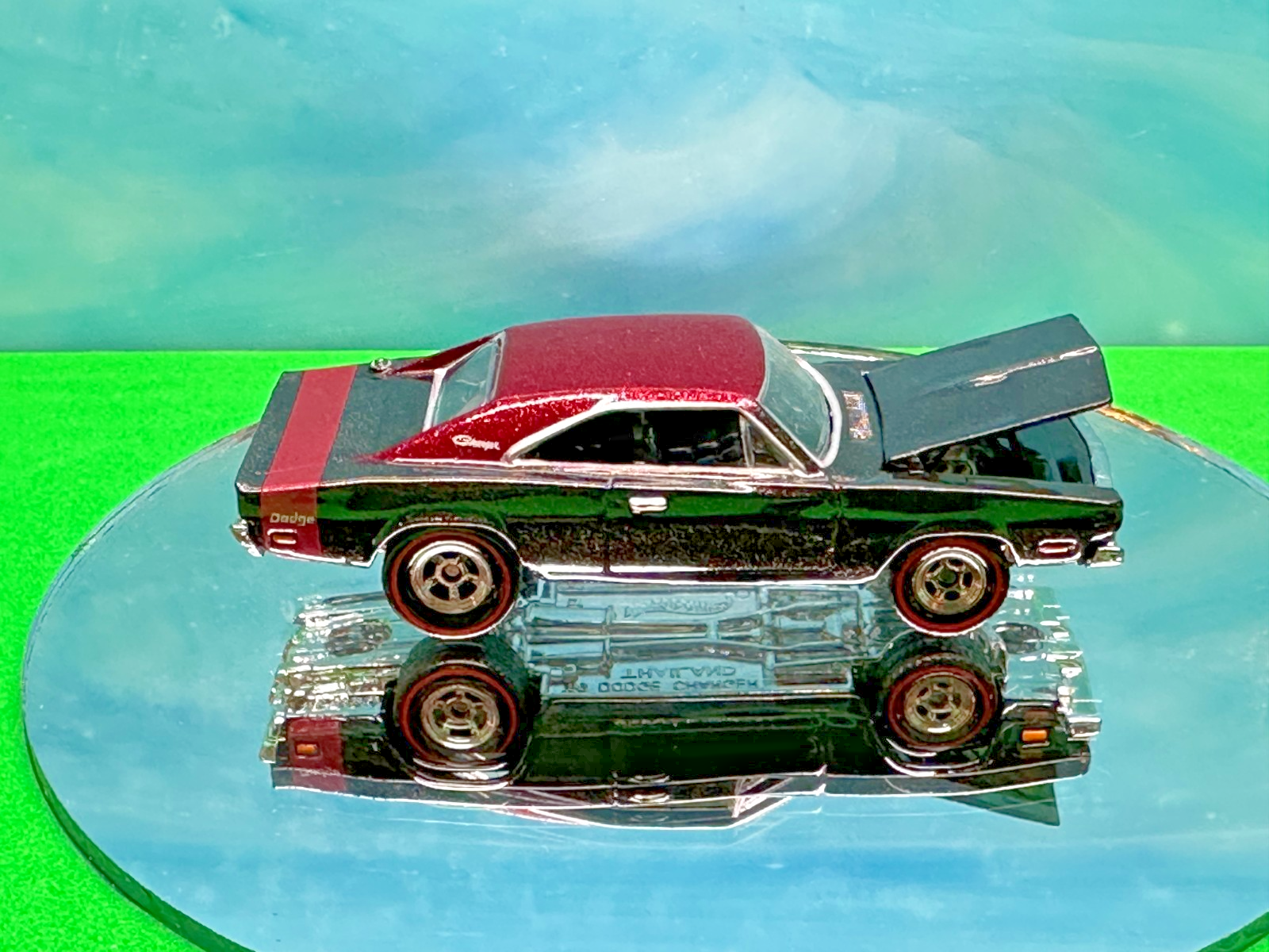 Hot Wheels Beautiful 1969 Dodge Charger Black Red-Line, Real Riders Tires Rims New Loose Shipped in a clear sealed bag and in a box.