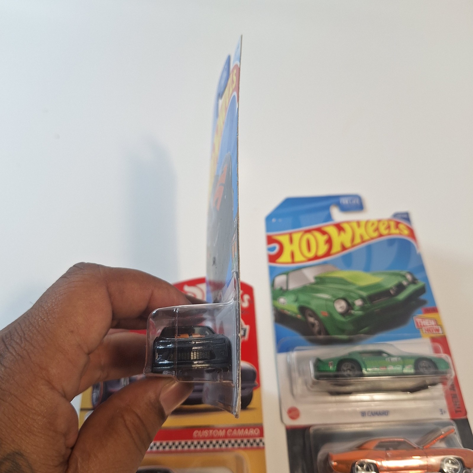 The product is a set of Hot Wheels Camaro Super Treasure Hunt cars in green color. These 1:64 scale diecast vehicles feature the iconic Camaro model and are suitable for various age levels, including young kids and teenagers. With a focus on the Hot Wheels Super Treasure Hunt series, these collectible cars are designed for both boys and girls who enjoy playing with toy vehicles.