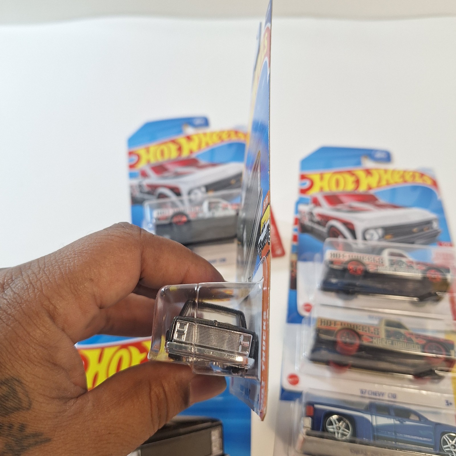 The product is a Hot Wheels Chevy Silverado and Chevy C10 in red color. These diecast toy vehicles are part of the contemporary manufacture line and are perfect for collectors and kids who enjoy playing with cars. The Chevrolet C10 model is a classic and iconic design that appeals to fans of both the Chevy brand and Hot Wheels.