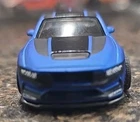 The Hot Wheels Ford Mustang Dark Horse is a 1:64 scale diecast muscle car with a customized design in satin blue. It featuring, real rubber tires, and a unique wheel swap. This model is part of the Hot Wheels Then And Now series, designed for adult collectors. Manufactured in Malaysia in 2024, this Ford Mustang is a part of the Street Machine character family, making it a desirable addition to any diecast car collection for both boys and girls.