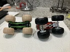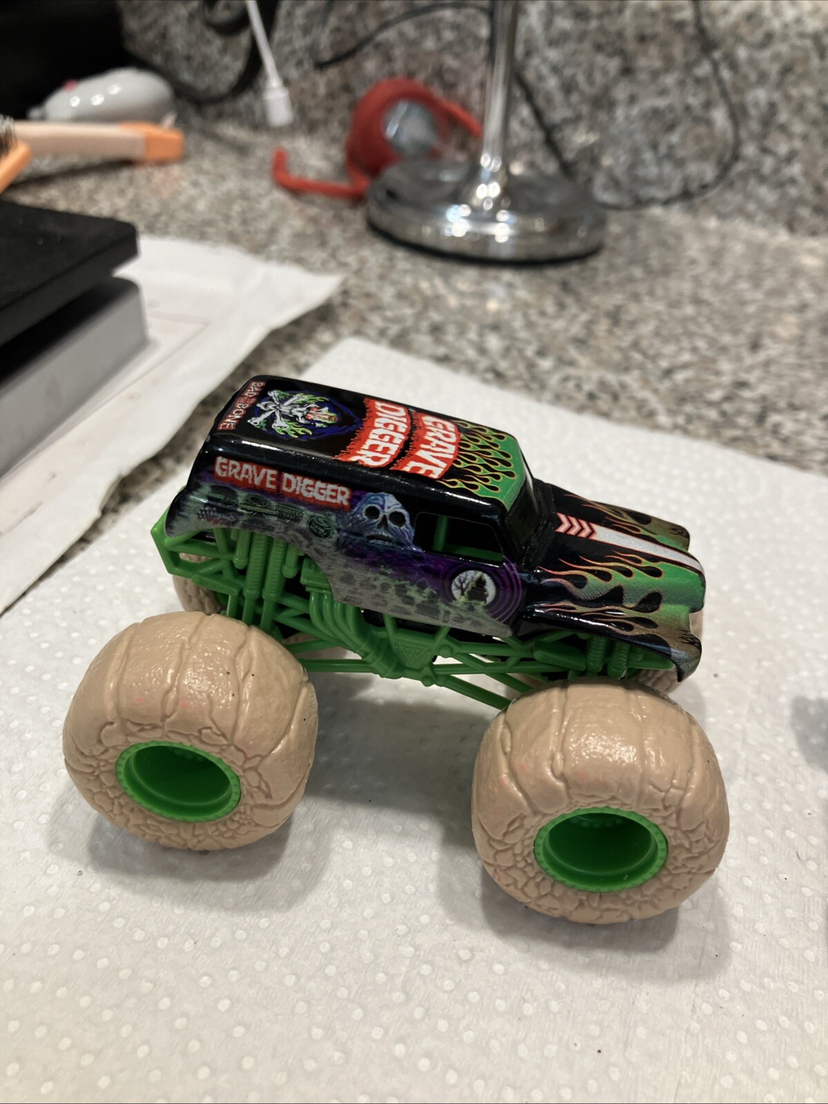 The Hot Wheels Monster Trucks Bone Shaker & Grave Digger is a rare, limited edition diecast set in 1:64 scale. It features the Grave Digger monster truck from Monster Jam, with a multi-colour paint job. The Bone Shaker model is part of the Hot Wheels Monster Jam series and is themed around racing. This collectible set is made of die cast and plastic materials, and was manufactured in Thailand.