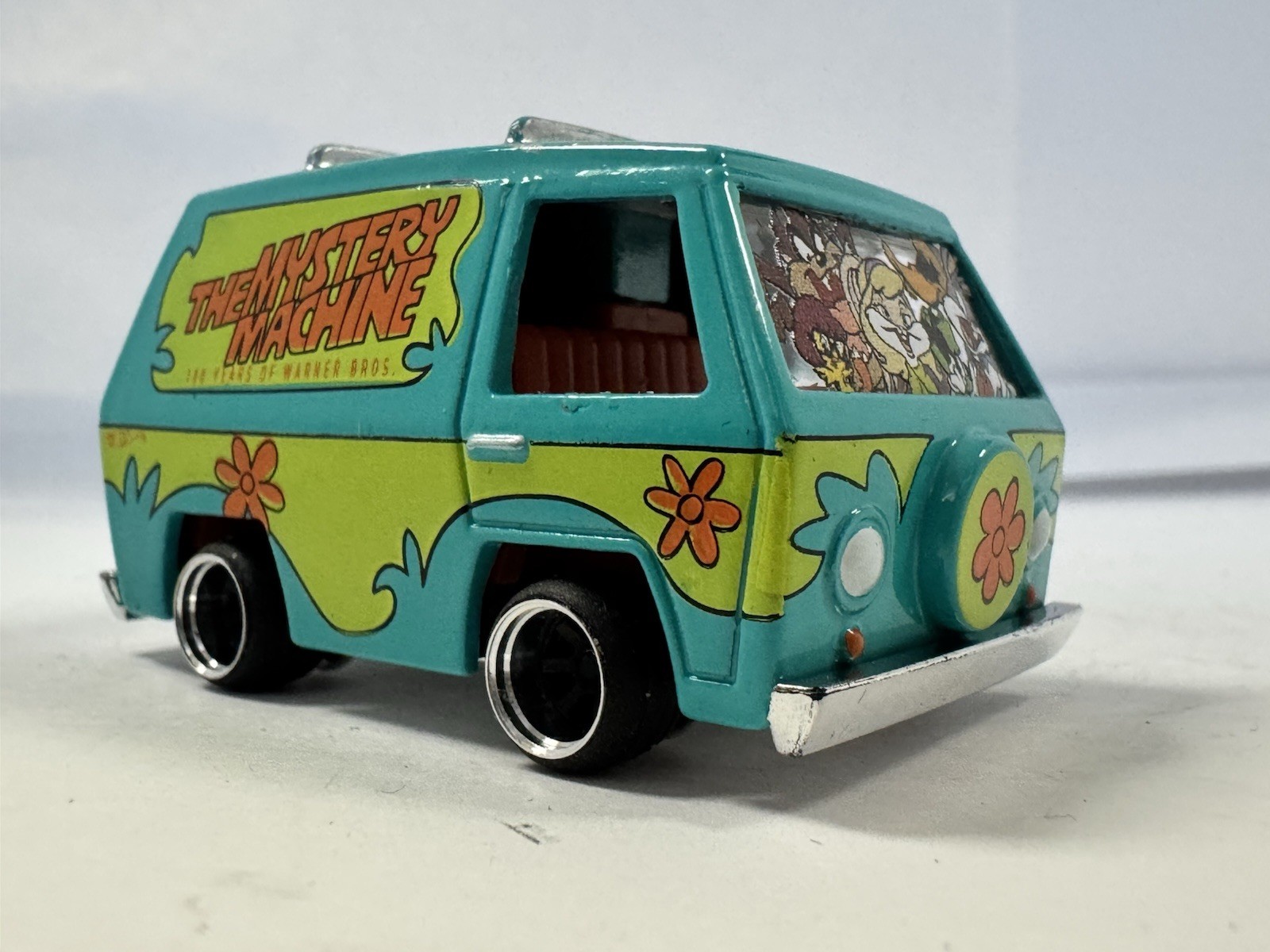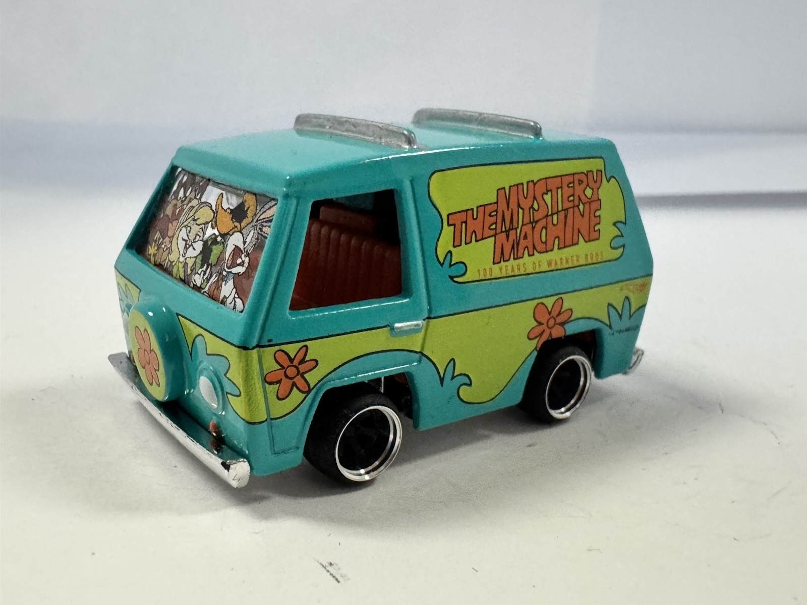Hot Wheels Mystery Machine, CUSTOM Wheels RUBBER TIRES Loose On LODC Wheels. Condition is Used. Shipped with USPS Ground Advantage.