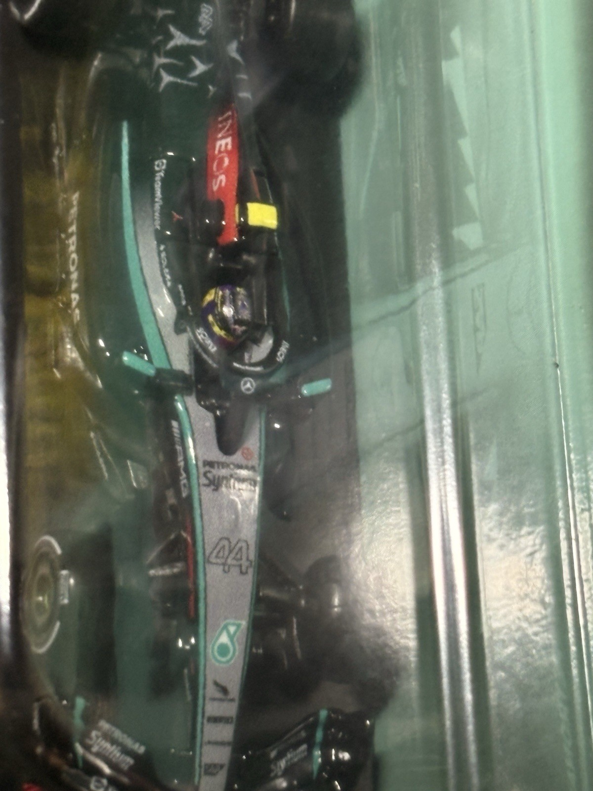 The Hot Wheels Premium Formula 1 Mercedes Amg Petronas Team Cars #44 & #63 Lot Pf 2 is a set of diecast cars in 1:64 scale, featuring the iconic green Mercedes AMG model. This collectible set is part of the Hot Wheels Formula 1 series, making it a must-have for fans of the sport and the brand. The unopened box adds to the excitement of unboxing these high-quality cars, making it a great addition to any toy or diecast vehicle collection. Perfect for children of all ages and fans of the Mercedes AMG Petronas Team.