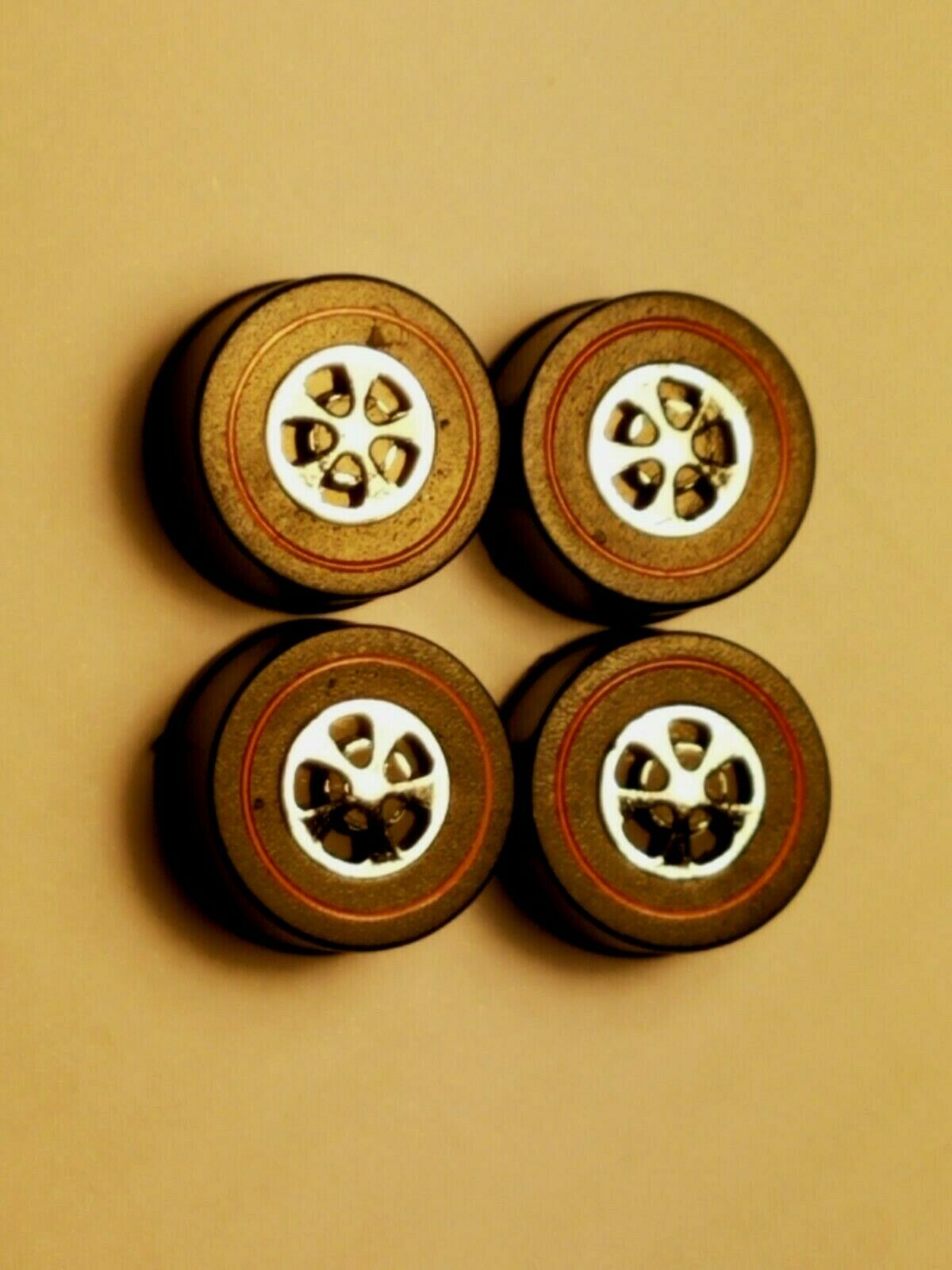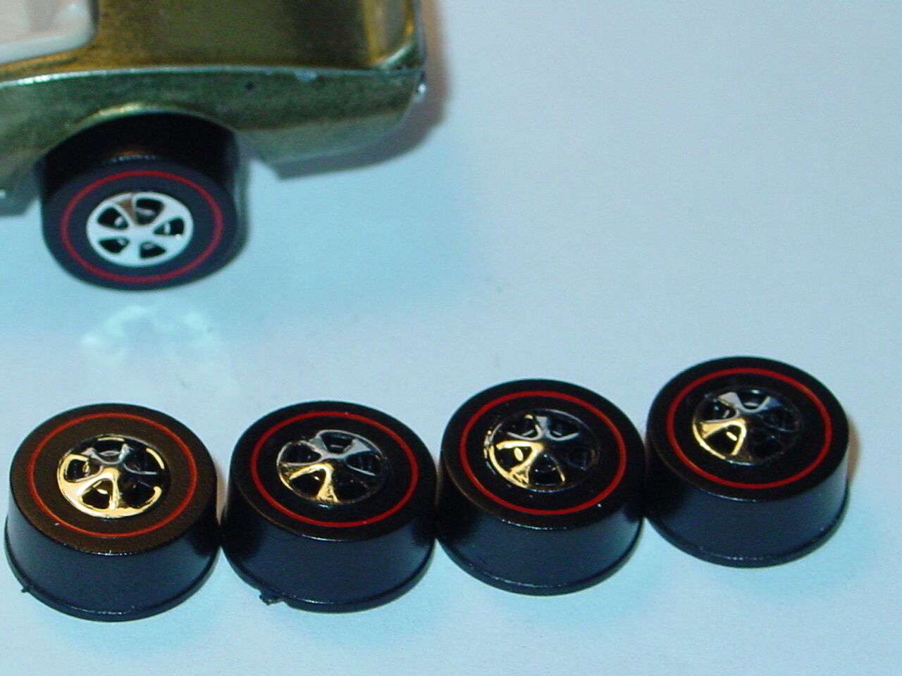 HOT WHEELS REPRODUCTION PARTS Please check other auctions for more Redlines! THIS AUCTION IS FOR 4 HK BLACK WHEELS(4 Large Bearing Type) Will fit: ANY CAR WITH LARGE BEARING WHEELS (Heavy Chevy, Boss Hoss, TNT Bird, Nitty Gritty, etc...) Condition: New/Repros Color: Black with Redlines Scale: 1/64 $3.95 Shipping in the U.S. $9.95 Shipping to Canada $12.95 Worldwide Shipping No Extra Shipping Charge for as many as you win today! Thanks for looking, GPHWHEELS