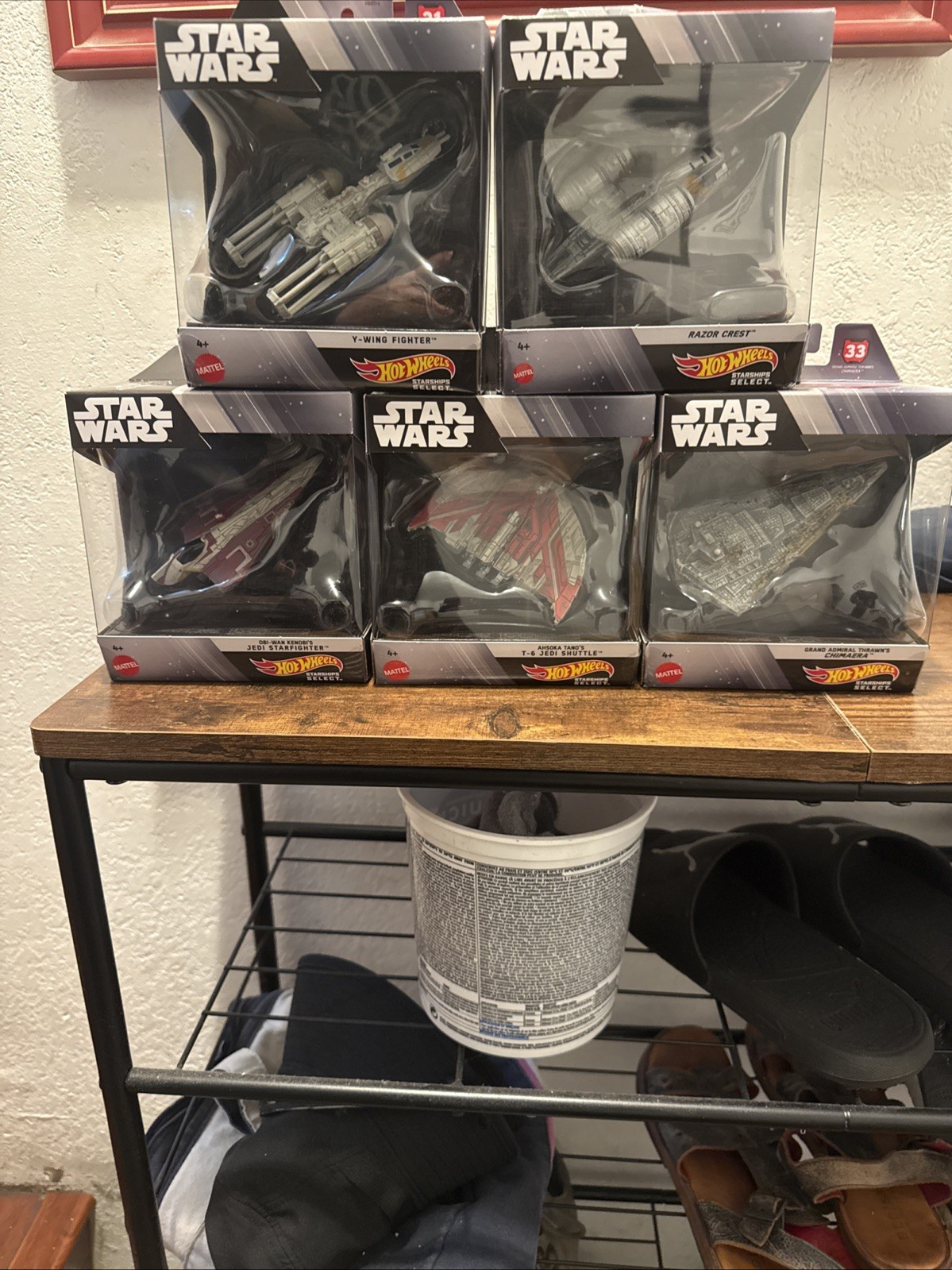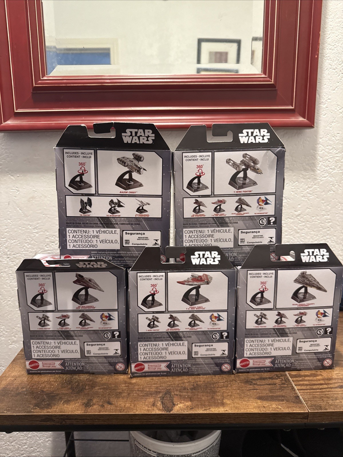 Take your Star Wars collection to the next level with this Hot Wheels Starships Select 5-piece set featuring some of the saga’s most iconic ships — all brand new and factory sealed! Includes: • Obi-Wan Kenobi’s Jedi Starfighter • Ahsoka Tano’s T-6 Jedi Shuttle • Y-Wing Fighter • Grand Admiral Thrawn’s Chimaera • The Razor Crest Each ship is crafted in premium die-cast metal with incredible detailing, perfect for display or as a collector’s gift. All items are sealed, never opened, and come from a smoke-free, adult-owned collection. Ships fast and securely packaged in a sturdy box with padding. ⭐ Trusted seller — check feedback!