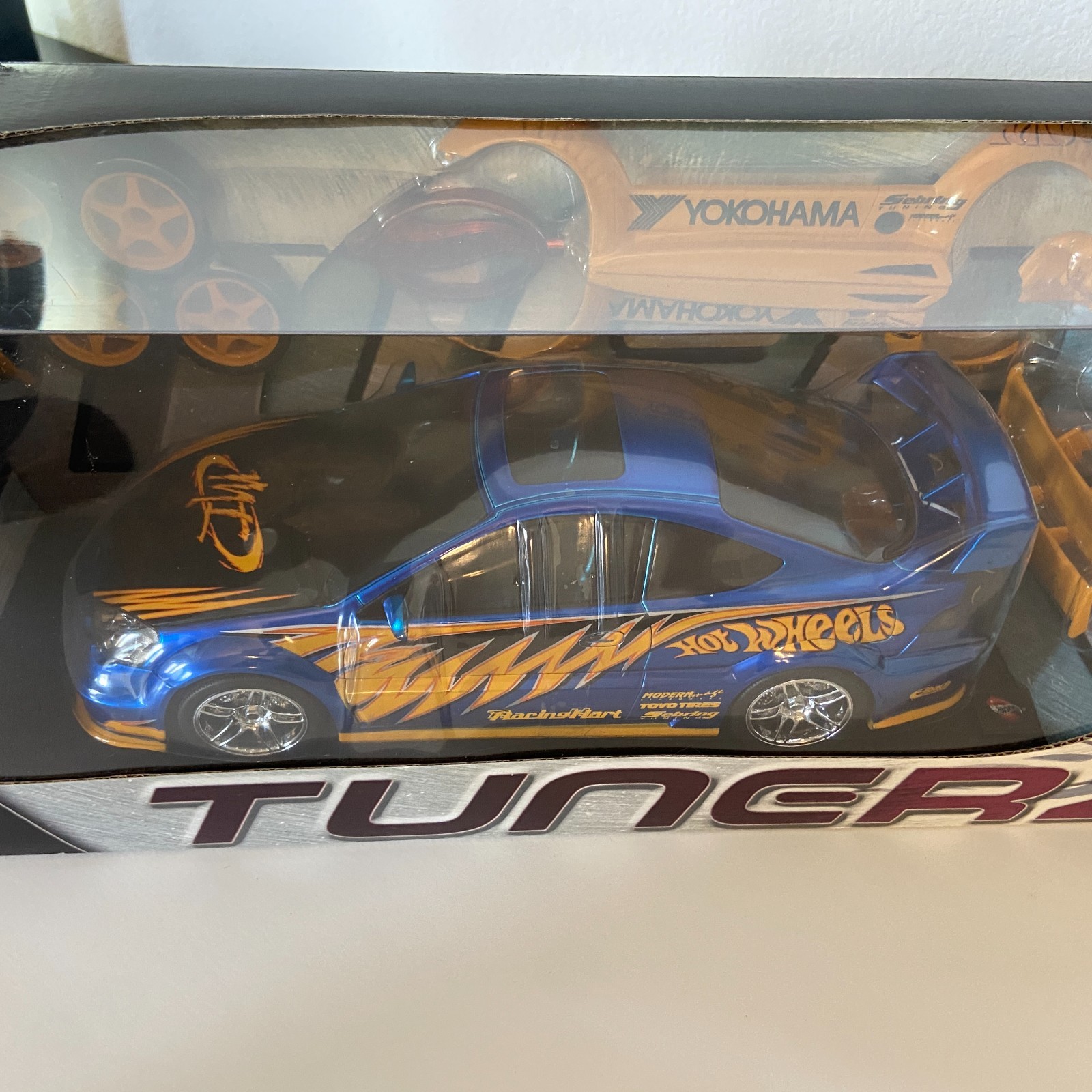 For collectors of tuner-era diecast and import nostalgia, this 1:18 scale Hot Wheels Tunerz Acura RSX delivers a true JDM-inspired experience. With authentic RacingHart graphics and a fully customizable parts kit, it captures the spirit of early-2000s street scene culture. The blue and orange livery is factory sealed in a large display box and features sponsor graphics from Yokohama, Eibach, Toyo Tires, Sebring, and more. Inside the sealed display box, you’ll find: Authentic JDM-style body kit with wide fenders and vented hood Swappable RacingHart-style wheels with metallic gold accents Oversized rear wing and front aero bumper upgrades Sculpted bucket-seat interior with visible roll cage This model is highly sought after for its vibrant detailing, tuner parts, and collector appeal. A must-have centerpiece for any 1:18 scale collection or Fast & Furious-era display. Display Worthy. Collection Ready. Shipping Notes: Shipped in a well-protected, oversized box with padding to preserve the collectible packaging. Tracking and insurance included. From the DPL Family We’re collectors too — every item is inspected, packed with care, and shipped securely in a rigid box to protect the packaging. Thanks for supporting our small, family-run shop! View our full collection on eBay Visit our diecast collection on eBay