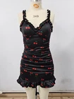 $ 3.7Vintage satin ruffle V-neck bodysuit bridal lingerie high cut size S white