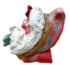 Add a touch of vintage charm to your holiday decor with the House of Hatten 1989 Santa with cardinal ornament. Featuring a whimsical Santa face with a adorable red cardinal on his shoulder, this piece is a wonderful nod to Christmases past. The hand-painted papier mache and resin construction ensures a unique and enduring holiday classic. Crafted in the Philippines during the 90's, this ornament is a testament to the era's craftsmanship. Its matte finish and all-over multicolor design bring a warm, inviting feel to any Christmas tree. Whether you're adding to your collection or seeking that special holiday accent, this retired House of Hatten treasure is perfect for both. Previously owned. In good vintage condition. Some little paint flakes. Please see photos as they are part of the description. Measures 4.5 x 3.25" x 4"