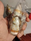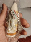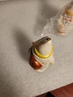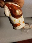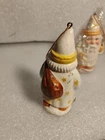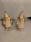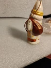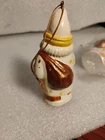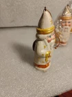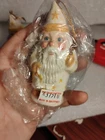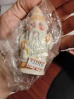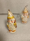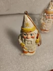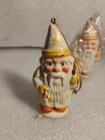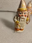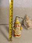 House of hatten Santa Claus ornaments. 3 and 3/4 in high. These are unique in the sense that it is Santa Claus Justin White one of them is still in the package has never been opened the other one does have a little Nick behind the left shoulder and some kind of a blue mark on the right shoulder on the back side otherwise they are in an excellent condition they do have the house of hatten patent mark on the very bottom of the base 1995 and they are both holding a little angel in their right hand..