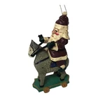 Add a touch of folk art charm to your Christmas decor with the House of Hatten 2000 Santa on Horse ornament. This medium-sized, multicolor piece features a jolly Santa figure, expertly crafted to bring a festive spirit to any room. Signed by the artist, Rawson, it's a unique addition to your collection or as a thoughtful gift. The ornament falls within a range of prices, depending on its condition, and is perfect for those who appreciate handcrafted holiday decor. Whether it's to adorn your tree or to display within a festive arrangement, this House of Hatten piece captures the essence of Christmas joy and celebration. HORSE IS MISSING TAIL.