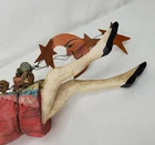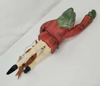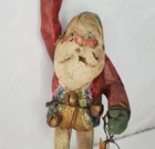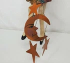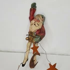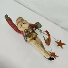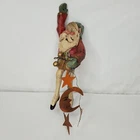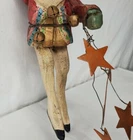 Vintage House of Hatten Santa dancer ornament with stars and the moon - carved, folk art style - appx. 8.5" -good condition- signed