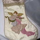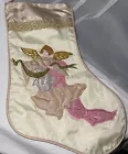 House Of Hatten Christmas Stocking Satin Angel Gloria Cream Pink Gold Green Rare. Condition is Used. Shipped with USPS Ground Advantage.