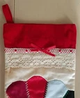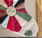 House Of Hatten Vintage Patchwork Christmas Stocking Satin, Velvet, Lace, and Cotton Pretty stitching... Beautiful stocking... Very good condition......does have some light Staining on the front...and a stain on the back....see photos No rips...... Approx. 18" x 10" at the widest, and longest Please view all photos and ask questions before buying ALL SALES FINAL - No returns Smoke and pet free home Shipping Only in the Continental USA No International shipping FedEx only used for shipping - No exceptions Physical street address needed No P.O. boxes Thanks for looking!!!
