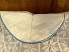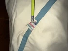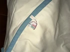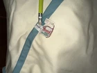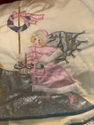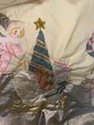 New with price tag! Whimsical and beautiful! Metallic silver ice and wings. Good metallic stars, ribbon and wreath holder. The skating ice angels are in pink with white fur accessories. The goose has a teal ribbon around its neck. The trim is a sea foam teal, if that’s a color. It’s beautiful and Barbie pink! 44” in diameter.