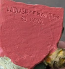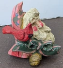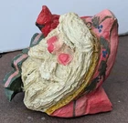 Vtg 1992 House of Hatten Santa head with rosy cheeks and nose with a cardinal perched on a boy. Folk HOH. Measures 3 1/4" tall x 3 1/4" x 3"