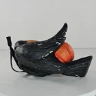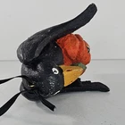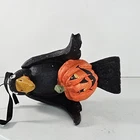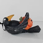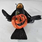 Hand-painted Halloween-themed crow holding a pumpkin, ideal for adding charm to seasonal decor. Lightweight and durable resin construction. • Hand-painted resin material • Lightweight and sturdy design • Features a crow holding a pumpkin • Includes attached loop for hanging • Unique collectible figurine Approximate dimensions: 5.75 inches long, 4.1 inches wide. Condition: Pre-Owned It has some paint chips and some tissue paper stuck to some areas. See photos as they are part of the description.