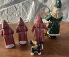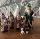 Lot of House of Hatten ornaments. Two Santas with geese, measure 5” tall, original stickers. One is missing the string. Dated 1988. Santa with bells and Star - also dated 1988. Angel cat, dated 1997. Tall fisherman Santa is 7”. He is actually from a line called Galleries II, but as you can see he fits in perfectly. He has fish in one hand and a net in the other. All five included. Excellent condition. Will be wrapped with care to help ensure a safe delivery.
