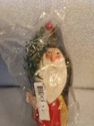 House of hatten wooden carved Santa Claus holding a Christmas tree ornament 5 and 1/2 in tall this is an item that was bought new it was never even taken out of its packaging I didn't want to take it out of its original packaging to maintain it's originality has original price tag and original tag