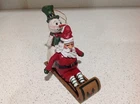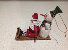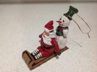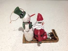House Of Hatten Santa and Snowman Sleigh Ornament. Measures 5 inches tall.