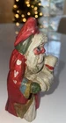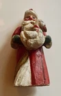 NOTE : the bottom appears to be missing, according to my research and looking at other photos, which show Santa’s black boots beneath the robe. However, the bottom is smooth, and in my opinion, not noticeable unless you’re looking for it. There is a chip at the top of his hood, and other than expected signs of age, this little guy is great looking! He is very lightweight. Rustic, primitive , and old, this House Of Hatten Santa with Goose Christmas Ornament is beautifully hand painted Small multicolor ornament Ready for hanging on your Christmas tree, this ornament is made of resin and has a unique old world rustic look that will add character to your holiday celebrations.