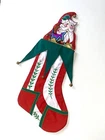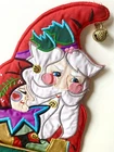 House Of Hatten Vintage Christmas Stocking featuring a Jester Santa Elf with bell accents. There are 3 available and all are in excellent condition. Please see photos for details. I have a large collection of stocking and am happy to combine shipping.