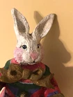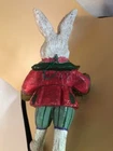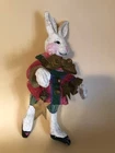 THIS 8 1/2" WHITE RABBIT ORNAMENT CAN BE HUNG OR PROPPED UP FOR EASTER AND YEAR AROUND. HE HAS A BIT OF PAINT CHIPS MAINLY ON ONE SHOE. THIS FIGURE IS NAMED "REACH FOR THE STARS" AND HE HAS STARS HANGING FROM HIM. A VERY SPECIAL FIGURE FROM HOUSE OF HATTEN.