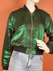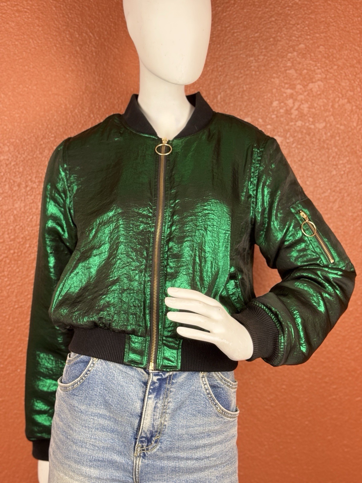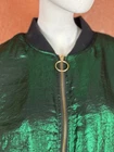 The House of Harlow 1060 REVOLVE Bryce Bomber in Emerald Bomber Jacket is a stylish and trendy jacket designed for women. Made from polyester, this solid green jacket features a zipper accent and a full zipper design, perfect for the winter season. The designer brand and colorful theme add a touch of flair to this fashionable bomber jacket, making it a versatile and chic addition to any wardrobe.l in good condition