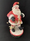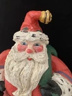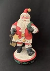 Great House of Hatten Santa Claus figurine from 1992. Crafted from mixed materials, the figurine stands at 10.5 inches in height and spans 6 inches in width. It is painted in festive Christmas colors with Santa having a sack over his back and holding stars and bells. Wonderful piece for decorating and adding to your collection.