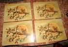 I list holiday items all year long. I have acquired a collection of House of Hatten New Old Stock (NOS), most are rare and vintage. Please check out my other items. This listing is for a gorgeous, rare set of 4 House of Hatten Denise Calla Placemats. Easy to wipe clean and with corkboard backing. They measure 15 1/2" x 12". I am listing another set with a complimentary design, so if you would prefer to have 2 of each design, just let me know when you purchase. Mint condition! FREE SHIPPING ! My items come from a non-smoking environment . I value your repeat business and it is important to me that you are pleased with your purchases. If you live in the OKC area you may schedule a pick-up. Thanks for taking a peek and have a blessed day !