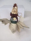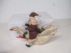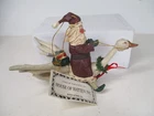 House of Hatten Christmas Messengers Ornament - Santa w Toys Riding Goose. 5 1/4"T x 7 1/4"L. no damage, paint good. has paper hang tag. no box. A WORD...99% of what we sell is old...like 50+ years old. it has been used, loved, cherished, played with, stored in a basement or attic and nothing we sell is mint. items come from yard sale, auction, flea markets and antique shops. we try to describe all the things we see but sometimes what we see and what you see are 2 different things. we may see it as minor paint wear, you may see it as a big flaw and vice versa