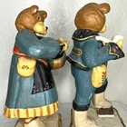 This House of Hatten Christmas figurine set from 1996 features a charming pair of bears, perfect for any collector. The intricate details and cozy design make these figurines a great addition to any holiday decor scheme. Whether you're a fan of House of Hatten or just love festive decor, this figurine set is sure to impress. Each is signed with D. Calla, has been handmade & created. What a fantastic vintage set! Each has seen the expected use over time. A few flecks of paint have left, Mama Bear has an ear with a flea-bite. Both remain gorgeous & perfect for the holidays! Please see the photos for more details.