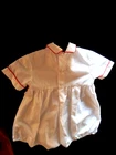 HOUSE OF HATTER CHRISTMAS ROMPER BEAUTIFULLY SMOCKED AND EMBROIDERED FEATURES SANTA IN HIS SLEIGH with REINDEER TRIMMED WITH RED CORDING 3 BUTTON CLOSURE AT BACK AND BUBBLE HAS 3 BUTTON CLOSURE UNDERNEATH 65% POLYESTER 35% COTTON NEVER WORN BUT ELASTIC IN LEG OPENINGS HAS LOST STRETCH (AGE RELATED BECAUSE THIS OUTFIT IS VINTAGE) SIZE 14 MONTHS 30 day returns accepted with full refund of item purchase price no shipping costs refunded Must notify seller within 24 hrs to report reason for return 0200