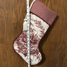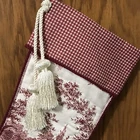 House of Hatten Christmas Stocking Quilted Farm Country Rooster Chicken 20” rustic with burgundy and cream color, tassels and lightly quilted. This unique design is hard to find. Excellent preowned condition. Thanks for looking smoke free home.