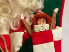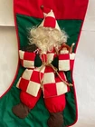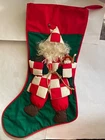 House of Hatten Christmas Stocking(s) THERE ARE 2 STOCKINGS AVAILABLE Santa w/ 3D Face and Beard + Wood Doll/Toy + Book titled "Naughty Boys and Girls" written in gold House of Hatten Inc. is known for high-end, beautifully crafted and decorated Holiday items such as stockings, reindeer, and ornaments. They are highly collectible. While vintage in age, these stockings have never been used or displayed. They are in NEW condition. Each stocking has a tag on the inside hallmarking House of Hatten Inc., Made in Philippines and 65% polyester/35% cotton. Measures 20" from top to bottom in longest places, 9" across the top, and 12" across the boot. A carved Santa face gives it a 3-D look with a fur beard. Santa is wearing a red and white checkered jacket with red pants and brown boots. In his left hand, Santa is holding a wooden girl doll with wood dangling legs and in his right hand, he has couple of candy canes along with a wooden book titled "Naughty Boys and Girls" tucked under his arm. Front background and backside are deep forest green color, trimmed in red. Fabulous Gift, and perfect for the Vintage Christmas Collector. Please see Photos for complete description and condition.