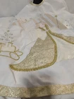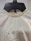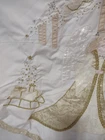 Add a touch of heavenly charm to your Christmas tree with this stunning tree skirt from House of Hatten. Beautifully embroidered with a golden angel and made with high-quality materials, this circle-shaped skirt is sure to impress your guests and make your tree stand out. Perfect for any Christmas occasion, this large beige tree skirt will be a cherished addition to your holiday décor for years to come. Celebrate the magic of the season with this charming House of Hatten tree skirt. Beautiful skirt... Smoke free 🏡 me A few spots under skirt can not be seen by top. Standard size tree skirt