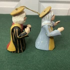 Joseph has one tiny hole/flaw at the bottom of his robe. Mary no longer has hanger of loop to be hung as an ornament. She also has cracks on the very top and under her hat. Please review all pictures for condition. Could still be used in a nativity scene instead or being hung as ornaments. Comes from pet free and smoke free home. Ask any questions.