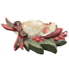Approximately 6” long and 5” wide. No chips, cracks, or repairs. Some wear on paint at some edges/points but due to the folk art design, that may be intentional. Pictures are part of the description. Please look at all pictures carefully and ask any questions prior to purchasing. From a smoke free, pet friendly, home.
