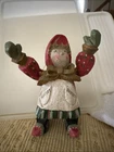 The House of Hatten Ornament features a primitive folk art design of a girl reaching for the stars, part of the Denise Calla collection. Made in 1992, this vintage piece is crafted from paper mache and measures 7 inches in height and length, with a width of 4 1/4 inches. It can be hung as an ornament and is an original piece from the House of Hatten franchise. This charming ornament would make a unique addition to any collection or holiday décor.