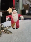 This House of Hatten ornament is a perfect addition to your Christmas decor. Featuring a hand-painted Santa Claus design, this small rustic ornament is made of resin and comes with a hanging feature. The ornament is marked the year 2000.
