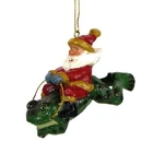 For Your Consideration is this Beautiful Holiday Ornament from House of Hatten. Ornament is from the House of Hatten Santa's Kingdom Collection by artist Susan M. Smith, and is retired, rare, and hard to find. Ornament is skillfully handcrafted resin from an original wood carving, and beautifully hand painted. Ornament is Santa riding on the back of a frog. Ornament measures approximately 2-1/4" High x 3-3/4" Wide x 1-3/4" Deep . Ornament is for display purposes only and is not a toy. Ornament is sold in excellent condition and will be gently handled and carefully packaged for shipment. Please contact me with any questions. Payment Payment due within 24 hours of purchase. Returns Returns accepted if item has been significantly misrepresented. Shipping Item will be carefully packed and shipped within one (1) business day after payment has been received and cleared.