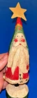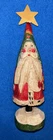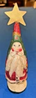 House of Hatten Santa Claus Figurine Christmas Decoration 1989 Metal Star A fun rustic looking Santa Clase (made of wood-like resin) with a long beard, red rosy cheeks and nose, green gloves, red coat with fur trim on bottom and green trimmed hood with a red heart. Santa actually looks like a Christmas tree (no feet) with a peg-like trunk in a snow covered base. On top of his head is a 5-pointed metal star. Bottom is incised with "House of Hatten (c) 1989" Measures about 8.25 inches tall x 2.25 inches wide x 2.25 inches deep. House of Hatten is a well-known brand that produces a wide range of holiday decorations. The House of Hatten is a family-owned business specializing in the design and manufacture of high-quality, handmade dolls and accessories. The company was founded in 1992 by husband and wife team, Bob and Cindy Hatten, and is headquartered in Fort Mill, South Carolina. The company’s products are made from high-quality materials and are designed to last for many years. House of Hatten’s products are available in a variety of styles, making it easy to find the perfect decoration for any home.