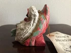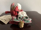 House of Hatten Santa Claus with a Cardinal Christmas Ornament 1992, Repaired. The bow has been repaired - last photo shows this. Sold as is.